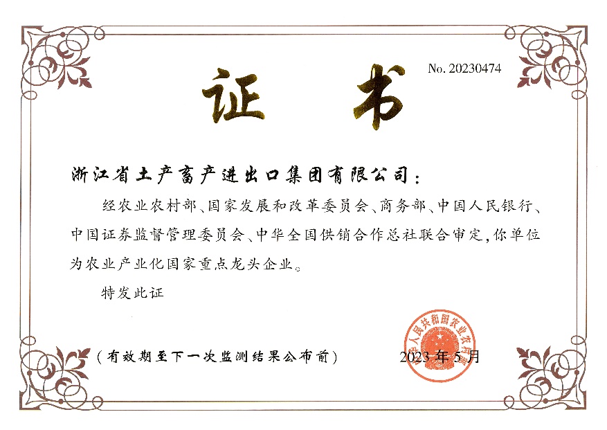 浙江土畜通過農(nóng)業(yè)產(chǎn)業(yè)化國家重點(diǎn)龍頭企業(yè)第十次監(jiān)測