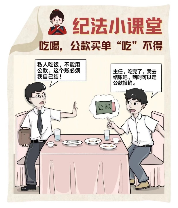 ?用公款支付親朋好友聚餐費(fèi)用或以各種名義公款報(bào)銷是絕對(duì)的“禁區(qū)”,莫讓“吃吃喝喝”成為人生的絆腳石。