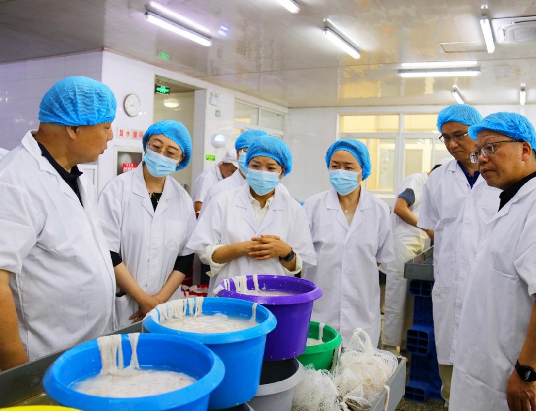 會(huì)前,謝平一行還參觀了腸衣生產(chǎn)車間。
