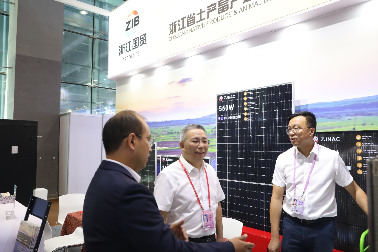 在第一期廣交會上,浙江土畜包括下屬輕工、盛力公司共有工具、五金、新能源等在內(nèi)的29個展位。公司老牌出口拳頭產(chǎn)品的漆刷展位積極順應綠色環(huán)保發(fā)展趨勢,帶來了用回收材料制成的油漆滾筒刷,并攜此產(chǎn)品參加了本屆廣交會新品發(fā)布活動。新能源展位作為新質(zhì)生產(chǎn)力產(chǎn)品開發(fā)前線,其光伏組件產(chǎn)品吸引了大量外商駐足和洽談。