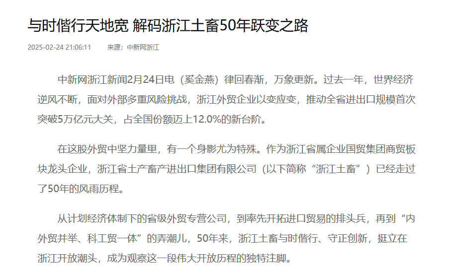 浙江土畜打造國際供應(yīng)鏈服務(wù)價(jià)值創(chuàng)造者
