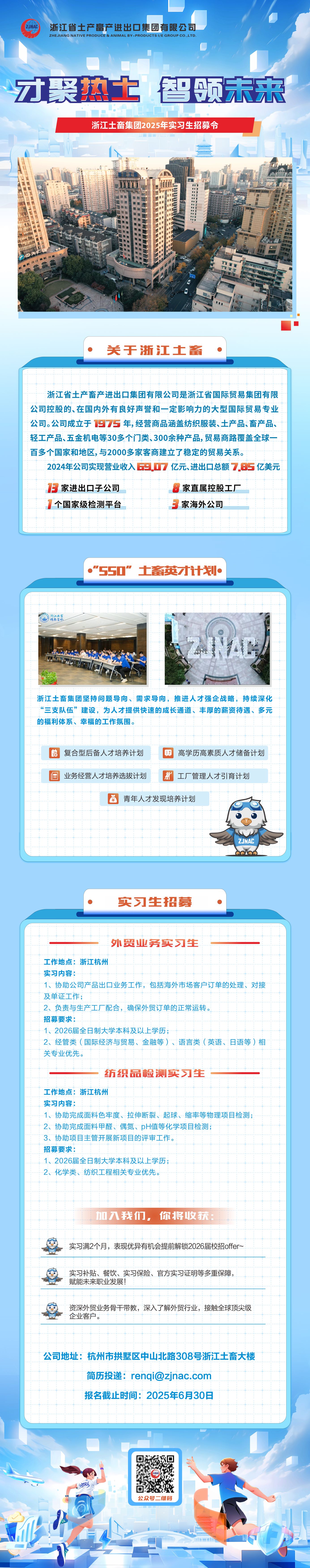 才聚熱土 智領(lǐng)未來——浙江土畜集團(tuán)2025年實(shí)習(xí)生招募令