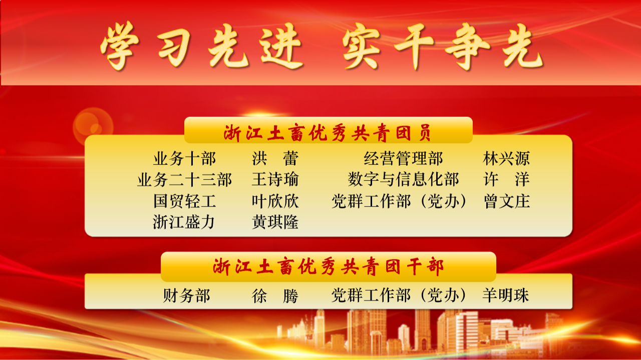 為表彰先進(jìn)、樹立榜樣,激勵公司各級團(tuán)組織和廣大團(tuán)員青年比學(xué)趕超、奮勇爭先,浙江土畜團(tuán)委決定,對2024年度優(yōu)秀共青團(tuán)員、優(yōu)秀共青團(tuán)干部予以表彰。希望各級團(tuán)組織和團(tuán)員青年,要以受表彰的先進(jìn)典型為榜樣,學(xué)習(xí)他們對黨忠誠、積極向上的政治本色,學(xué)習(xí)他們敢挑重?fù)?dān)、沖鋒在前的硬核擔(dān)當(dāng),學(xué)習(xí)他們立足一線、創(chuàng)先爭優(yōu)的務(wù)實作風(fēng),學(xué)習(xí)他們遵規(guī)守紀(jì)、積極作為的職業(yè)操守。要大力傳承和發(fā)揚(yáng)土畜人“實干”的優(yōu)良傳統(tǒng),在深度融入共同富裕、開放強(qiáng)省等重大戰(zhàn)略中加快打造“國際供應(yīng)鏈服務(wù)價值創(chuàng)造者”,貢獻(xiàn)更多青春力量。