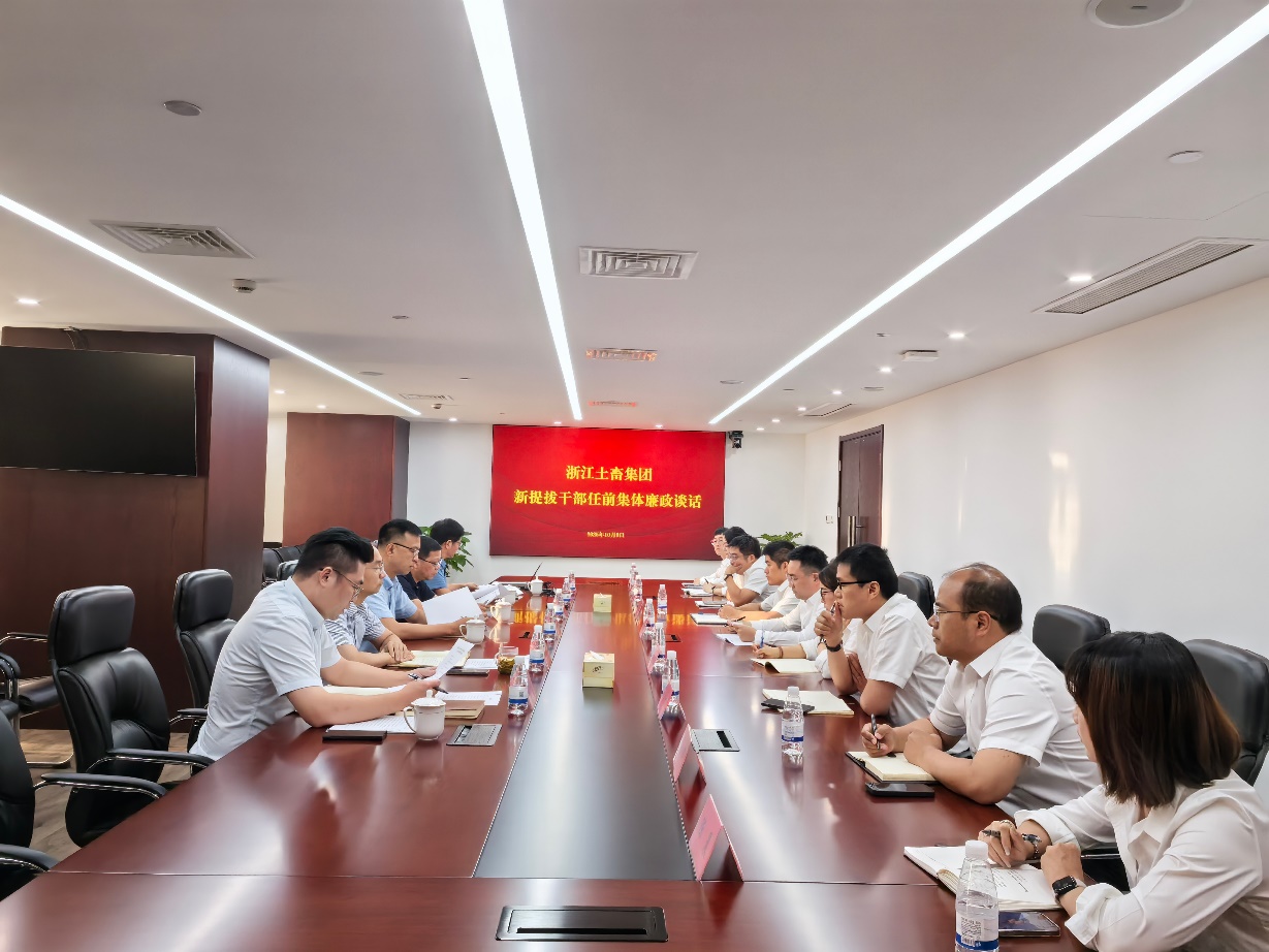 10月9日下午,浙江土畜召開新提拔干部任前集體廉政談話會議。公司黨委書記、董事長張斌,黨委副書記、總經(jīng)理林軍,黨委副書記金彤,紀(jì)委書記李峰出席會議并講話。公司人力資源部、紀(jì)律檢查室相關(guān)人員和全體新提拔干部參加會議。