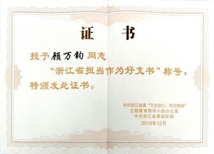 大會(huì)表彰了300位全省各領(lǐng)域基層黨組織帶頭人中涌現(xiàn)出來的先進(jìn)典型,浙江土畜集團(tuán)惠隆第二黨支部書記顧萬鈞同志被授予“浙江省擔(dān)當(dāng)作為好支書”的榮譽(yù)稱號(hào)。