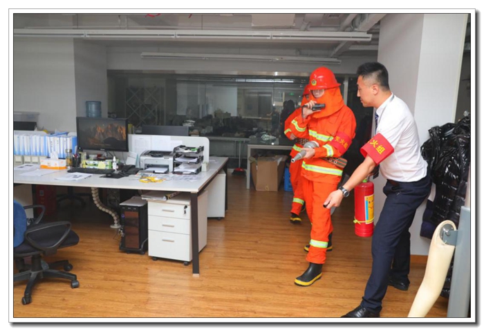演習(xí)指令下達(dá)后,各小組迅速按照分工緊張有序地展開行動。滅火和疏散同時展開,滅火組大樓微型消防站隊員快速趕到火場迅速將火撲滅;大樓全體員工在各自部門安全員的引導(dǎo)下安全有序地疏散到指定地點(diǎn)整隊清點(diǎn)人數(shù),整個疏散過程僅用時5分零8秒。